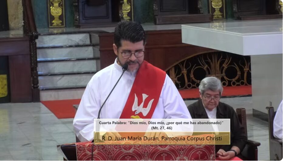 Durante la reflexión de la Cuarta Palabra de Jesús en la cruz – “Dios mío, Dios mío, ¿porqué me has abandonado?”, el padre Juan María Durán, párroco de la Parroquia Corpus Christi, criticó una de las crisis más persistentes y dolorosas del país: los accidentes de tránsito.