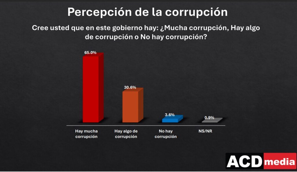 La mas reciente encuesta del grupo de comunicación ACDMedia, cuyos resultados fueron dados a conocer este miércoles, establece que 30.6 tiene entendido que hay algo de corrupción.