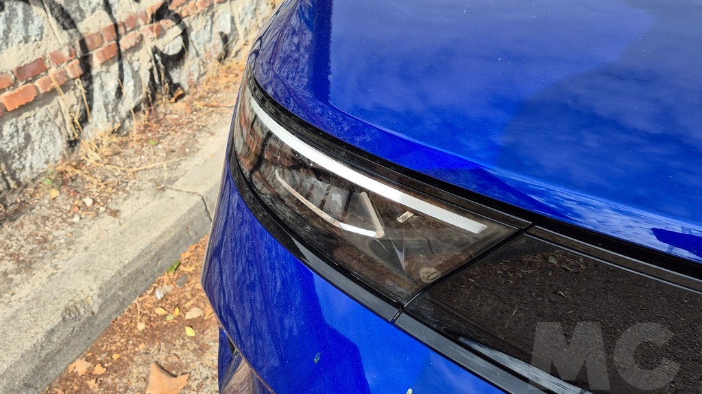 El rediseño del Mokka para 2025 ha sido extremadamente sutil porque la marca considera que su estética es su principal argumento de venta. Si comparamos este modelo con el Mokka X GLP que probamos anteriormente en MuyComputer, la diferencia es abismal. Aquel era un coche de formas redondeadas y aspecto campero, mientras que el modelo actual apuesta por líneas tensas, minimalistas y una postura mucho más dinámica. En la parte delantera, el protagonismo absoluto recae sobre el Opel Vizor, esa franja negra protectora que integra visualmente los faros y el nuevo logotipo Opel Blitz. Las luces de conducción diurna presentan una firma lumínica en tres bloques que aporta una mirada más técnica y moderna. Se ha añadido una pequeña parrilla entre el Vizor y la matrícula, optimizando el flujo de aire hacia el sistema de hibridación.